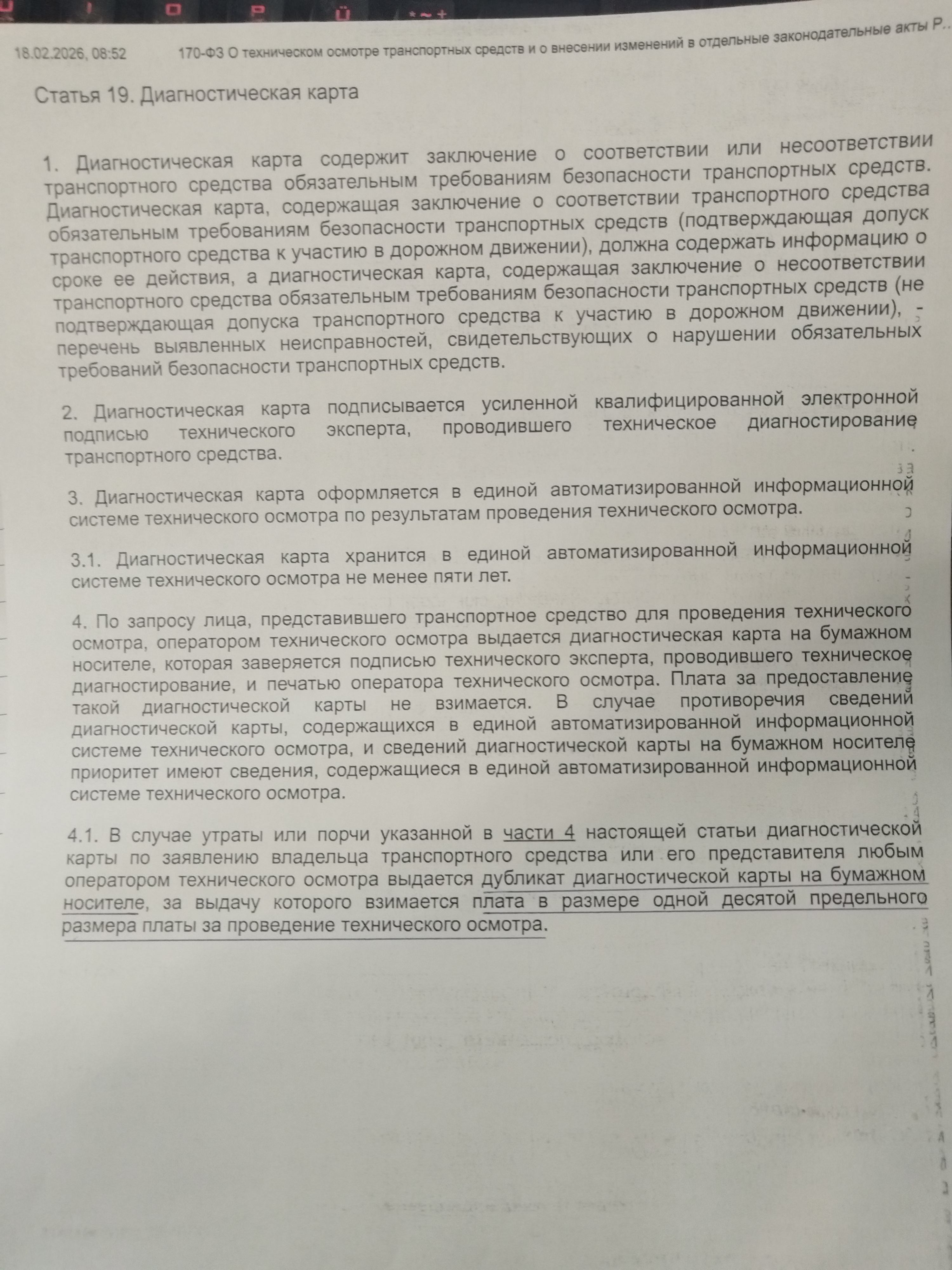 Дубликат диагностической карты на бумажном носителе взимается плата в размере одной десятой предельного размера платы за проведение технического осмотра.